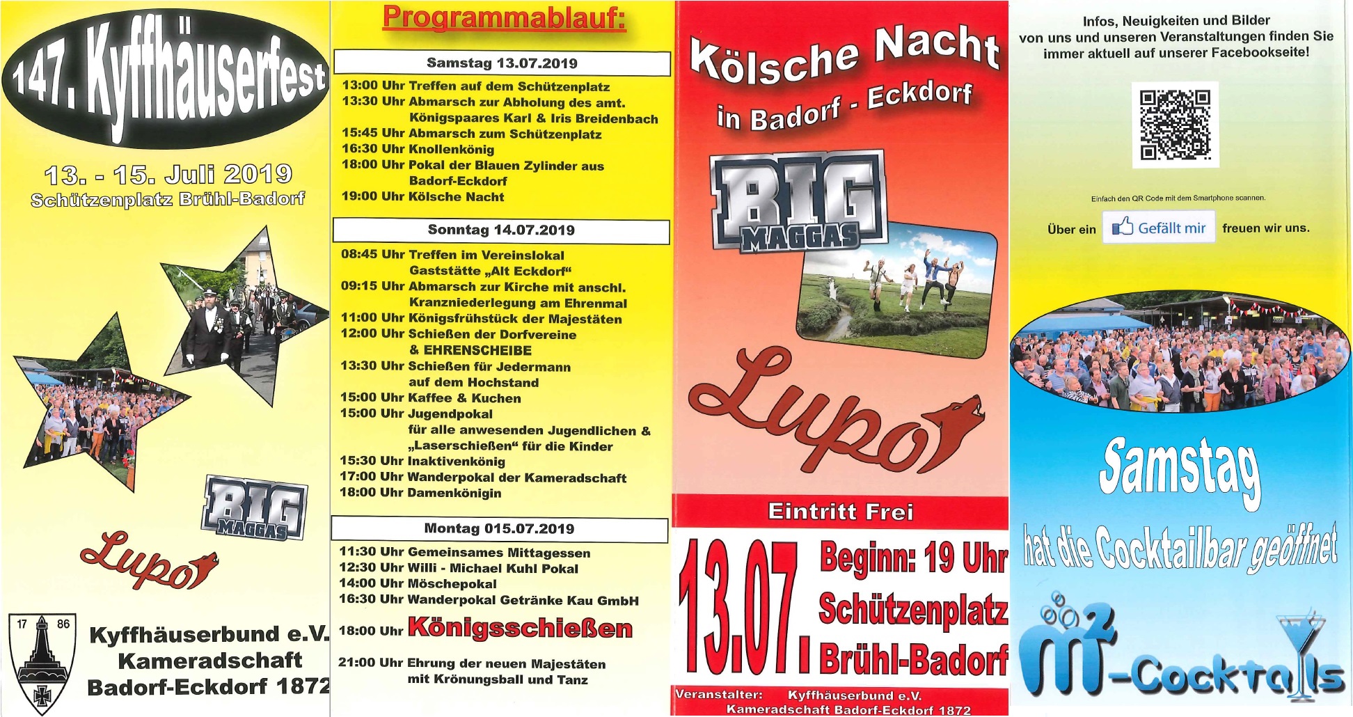 Auch das 147. Stiftungsfest des Kyffhäuserbund e.V. Kameradschaft Badorf-Eckdorf 1872 unterstützen wir mit einer Werbefläche. Die Veranstaltung findet am 13.-15. Juli 2019 auf dem Schützenplatz in Brühl-Badorf statt.