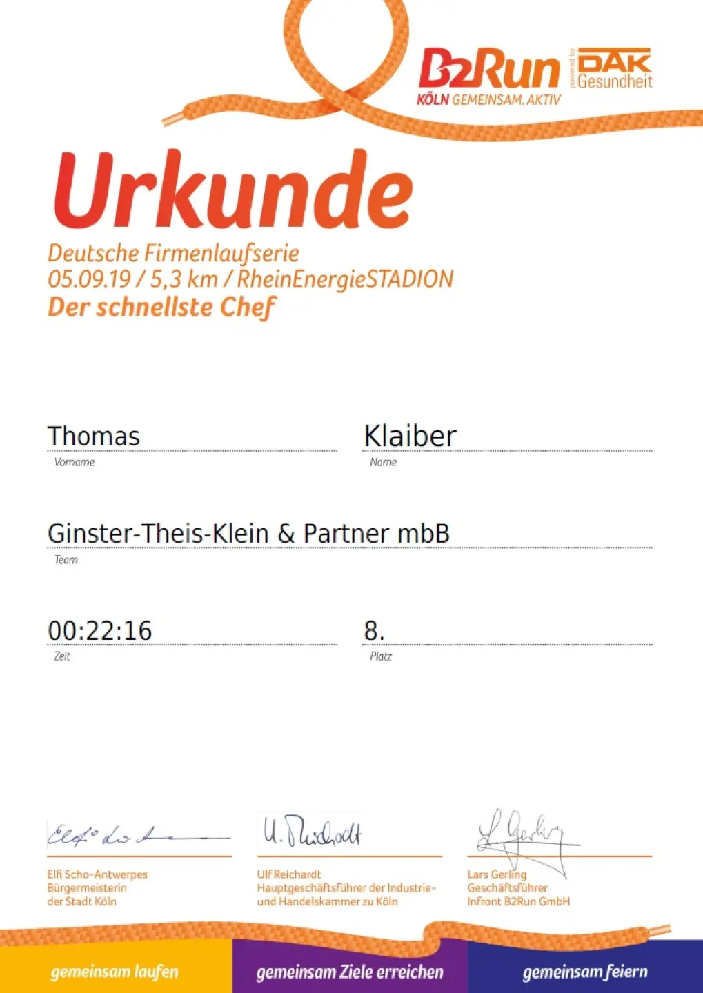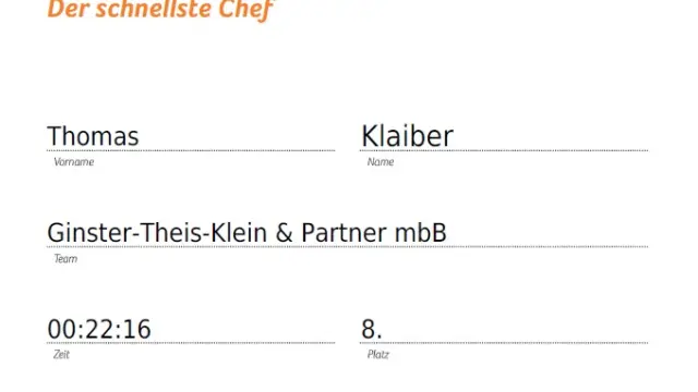 Neben viel Spaß und guten Ergebnissen erzielte vor allem Thomas Klaiber mit einer Zeit von 22:16 den 8. Platz in der Wertung "Der schnellste Chef". Herzlichen Glückwunsch!