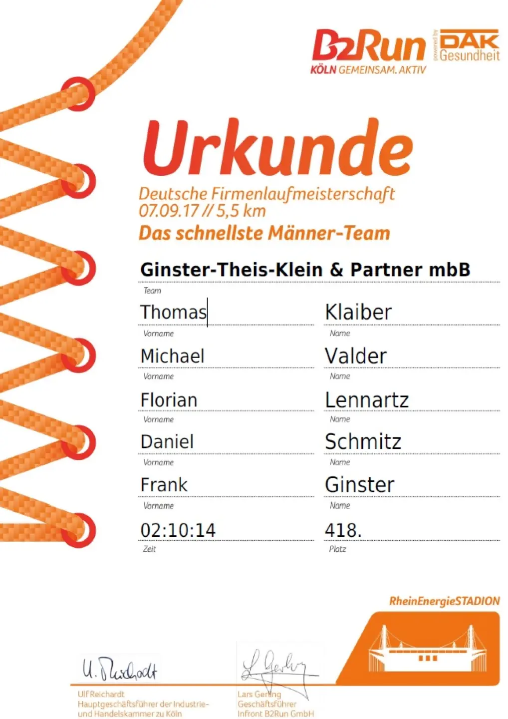 Gestern haben wir erfolgreich am B2RUN rund um das RheinEnergie Stadion in Köln teilgenommen.