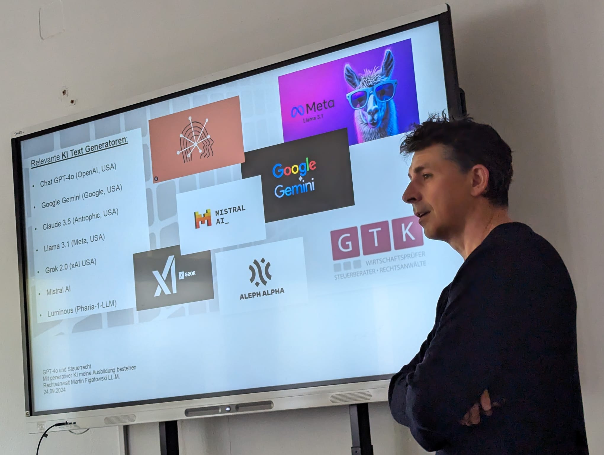 Daneben stellte Herr Rechtsanwalt Figatowski in zwei Workshops die Einsatzmöglichkeiten von generativer Künstlicher Intelligenz (KI) in der Steuerberatung vor. Hierbei erläuterte er, wie moderne KI-Tools wie GPT-4o bereits in der Ausbildung von Steuerfachangestellten zur Unterstützung alltäglicher Aufgaben und Analysen genutzt werden können. Die praxisnahen Beispiele stießen bei den Schülerinnen und Schülern auf großes Interesse und eröffneten neue Perspektiven für ihren beruflichen Werdegang.