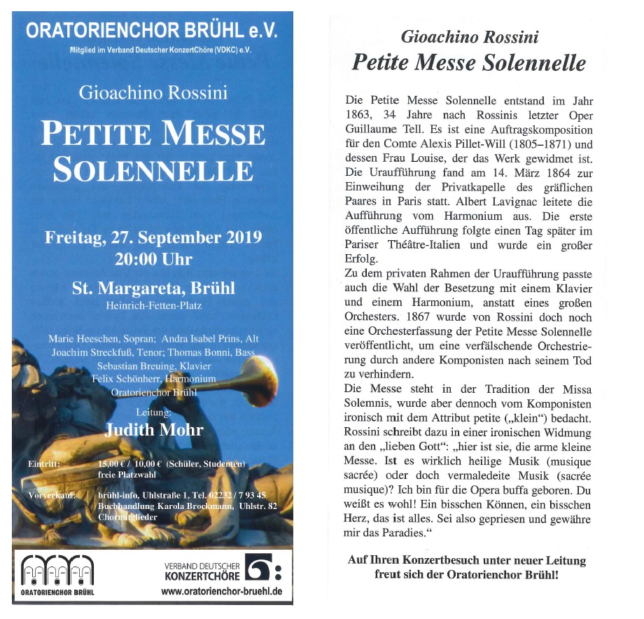 Veranstaltung des Oratorienchors Brühl e.V. am 27.09.2019