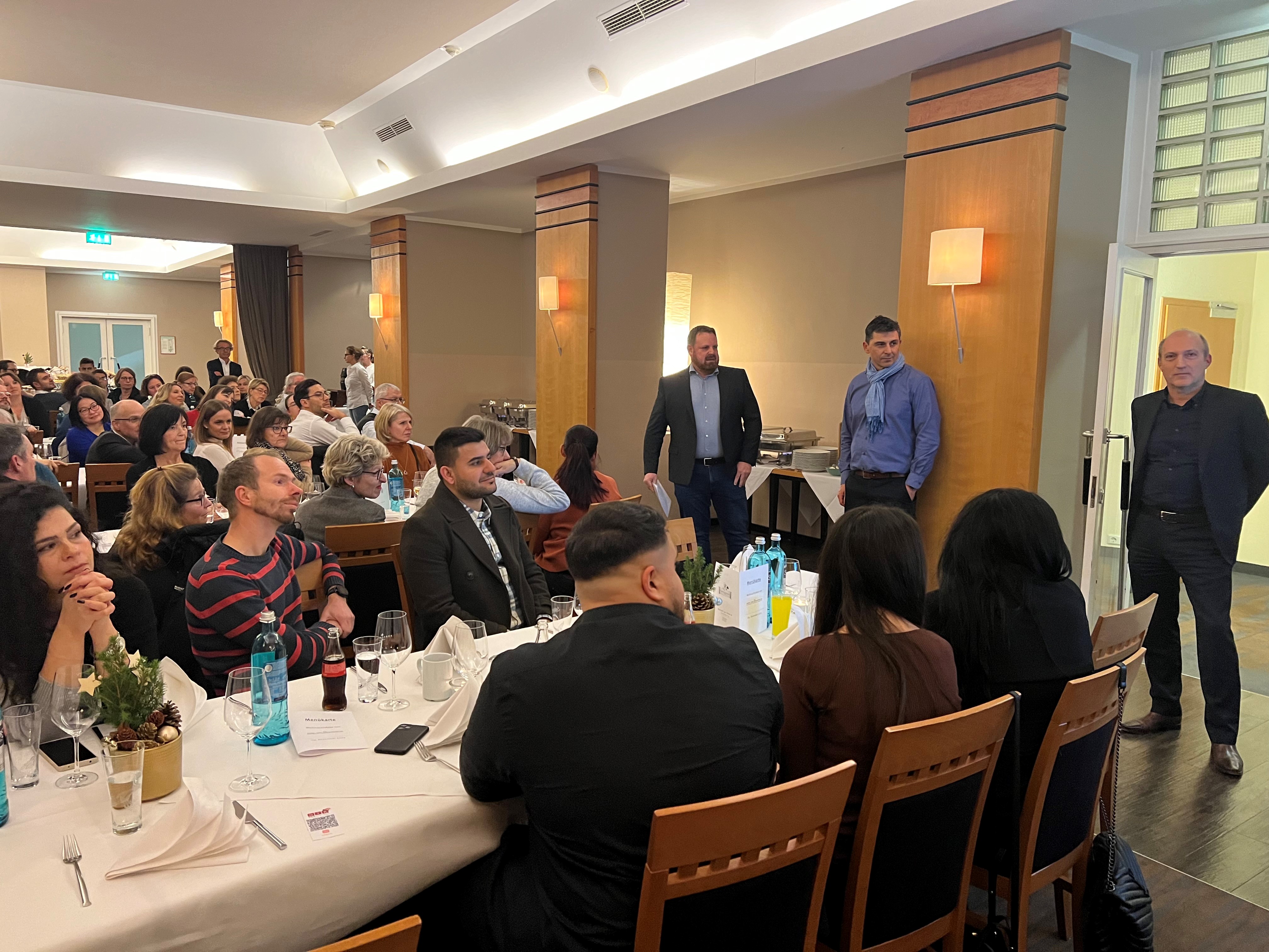 Am 09.12.2022 fand unsere diesjährige Weihnachtsfeier statt. Nach zwei Jahren Zwangspause hatten sich viele der Mitarbeiterinnen und Mitarbeiter sowie Partner im Hotel am Rhein versammelt, um das Jahr gemeinsam ausklingen zu lassen. Nach einem Glühweinempfang ging es in den Saal, wo die Mitarbeiter von den Partnern Guido Blesius, Armin Theis und Martin Figatowski im Rahmen einer kurzen Rede begrüßt wurden.