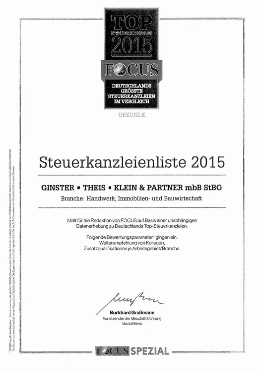 Wir zählen zu Deutschlands Top-Steuerberatungskanzleien und haben es auf die FOCUS-SPEZIAL Steuerkanzleienliste 2015 geschafft.